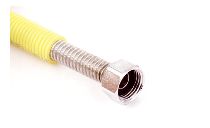 产品采用304不锈钢编织制造,不易老化、不易脱落、使用寿命长,管外面包覆层为阻燃PVC管,内管为NBR阻燃内管