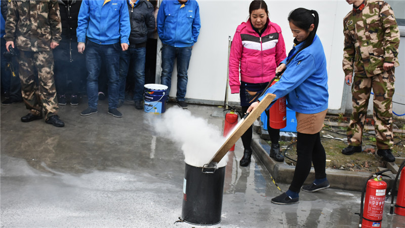 提高全体施工人员的消防意识,增强对火灾扑救的组织能力和疏散能力,更好的了解公司防火制度,熟悉逃生路径,提高自救能力;2017年2月8日,人事行政部联合赵巷消防队在厂区举行了一次以“人人参与消防,共创平安和谐”为主题的消防演习。